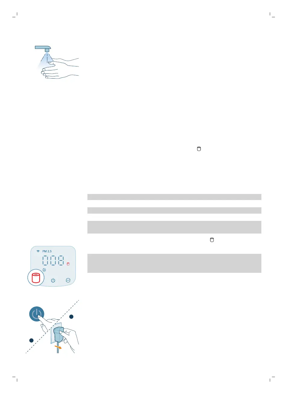 1 Απενεργοποιήστε τη συσκευή καθαρισμού αέρα και αποσυνδέστε την από