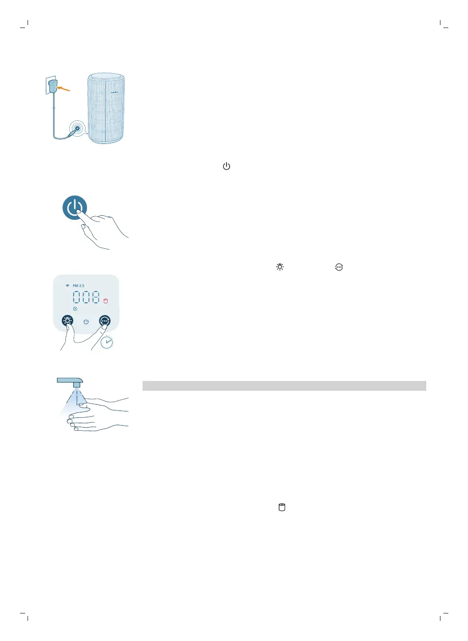 7 Συνδέστε το τροφοδοτικό της συσκευής καθαρισμού αέρα στην πρίζα.