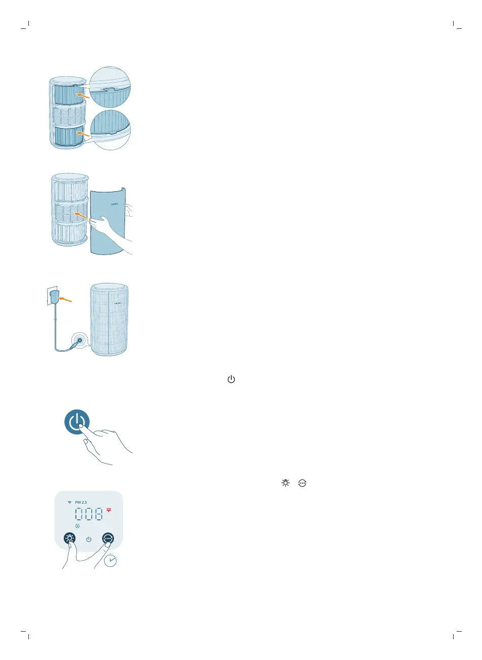 7 Включете адаптера на пречиствателя на въздух в контакта.