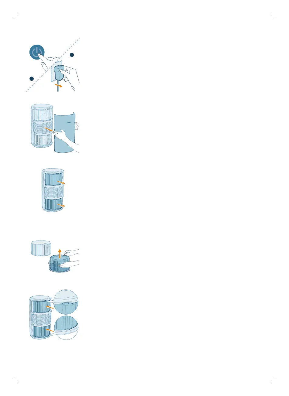 1 Изключете пречиствателя на въздух и изключете щепсела от контакта.