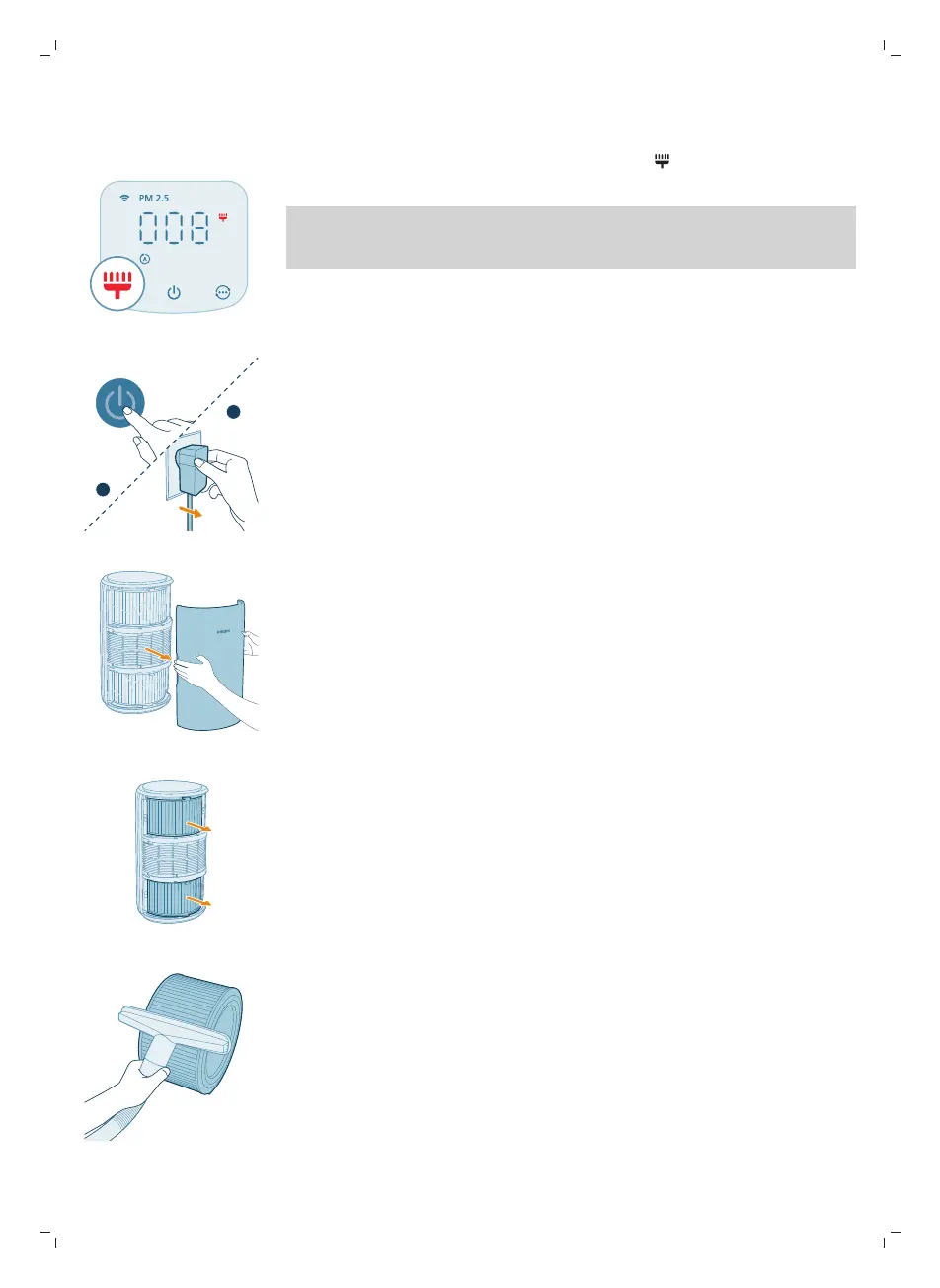 Кога предупредувањето за чистење на филтерот се прикажува на