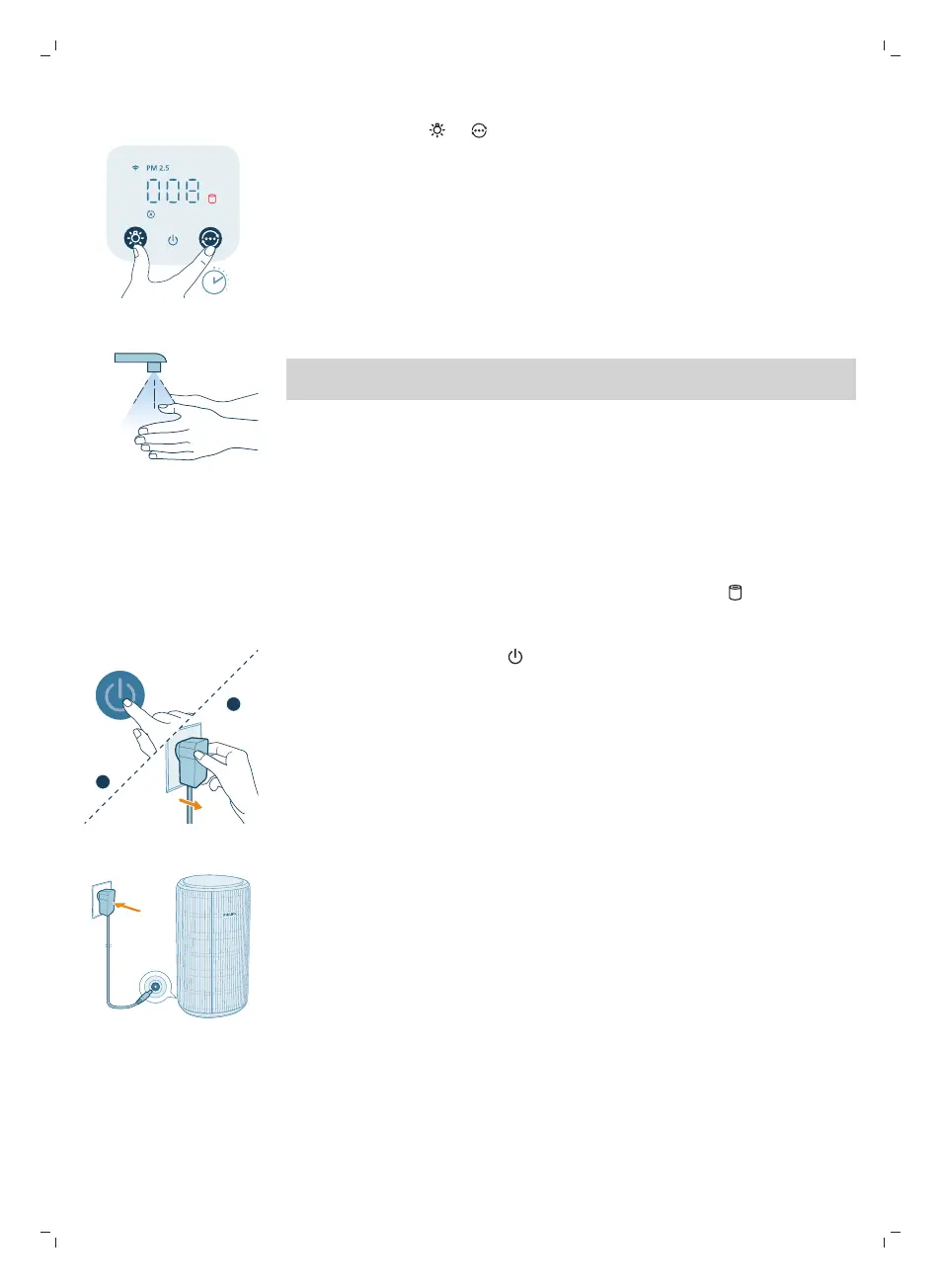 9 Tryk på knappen og i 3 sekunder for at nulstille filterets levetidstæller.