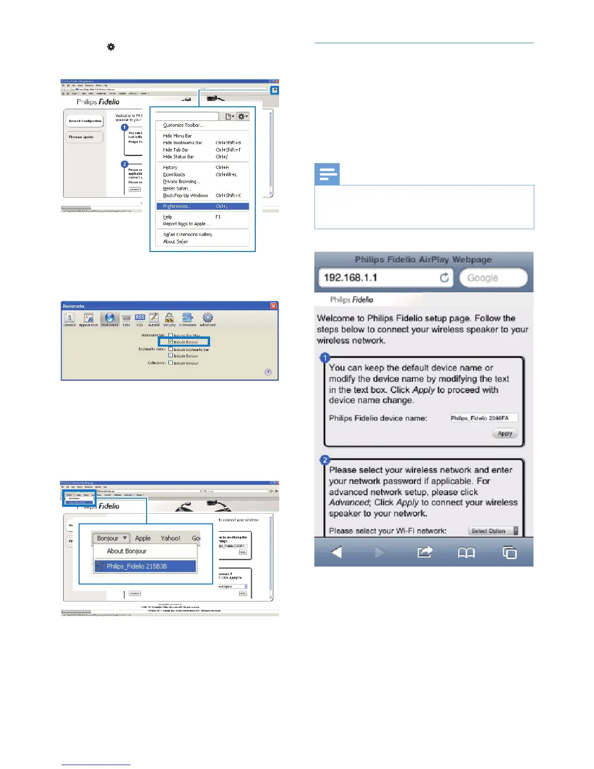 Bonjour pull-down list shown at the