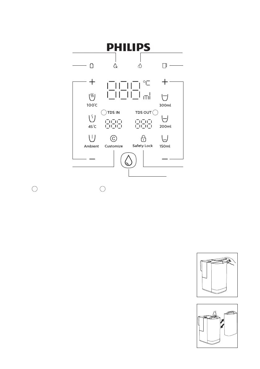 tank with tap water and place it back to the machine, then place the lid