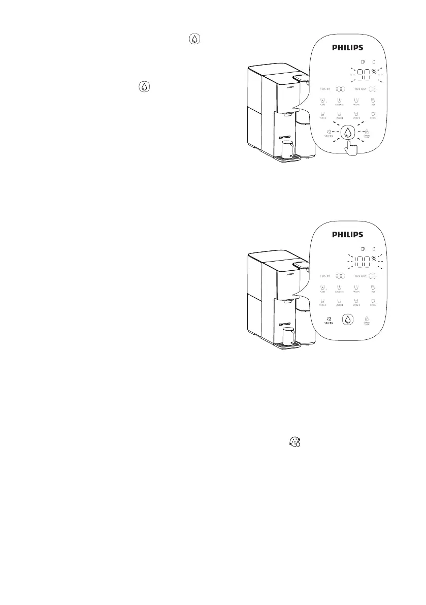 · Blijf het spoelproces volgen totdat het "100%" bereikt. U kunt tijdens het spoelproces in geval van