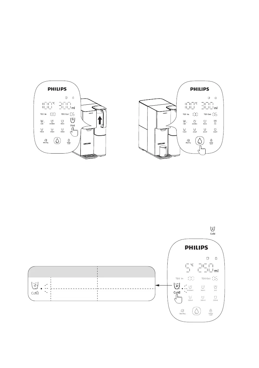 Gdy wskaźnik chłodzenia miga, nie zaleca się pobierania wody,