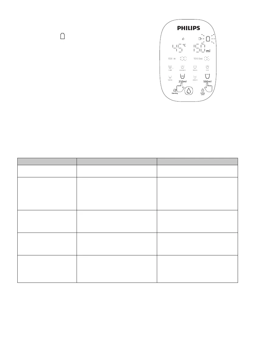„250 ml” i „500 ml” przez 3 sekundy.