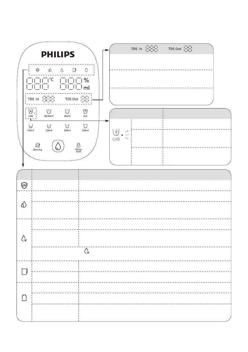 *Su değiştirme göstergesi olan “ ” simgesi yanıp sönmeye başladığında şebeke suyu tankındaki suyun değiştirilmesi