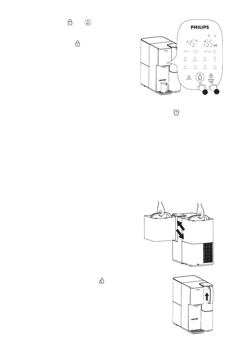 (4) Sıcak su çıkışı için " " ve " " düğmelerine