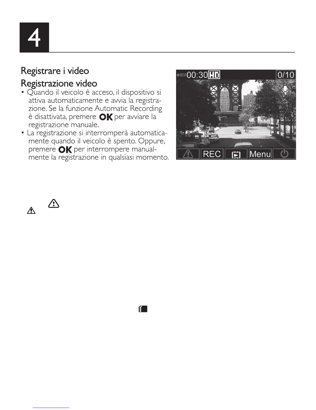 • Il dispositivo può salvare no a 10 le video Registrazione di Emergenza . Il numero