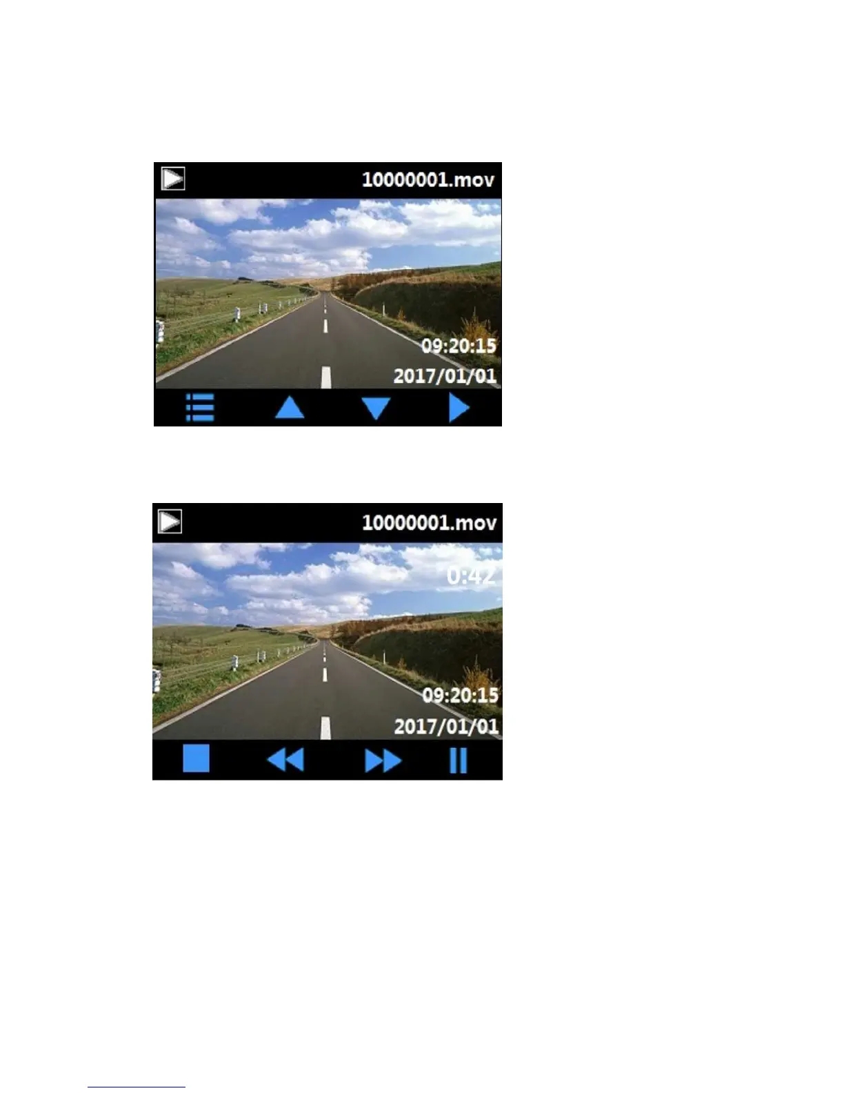 backward, or press emergency button to return to video play interface above.