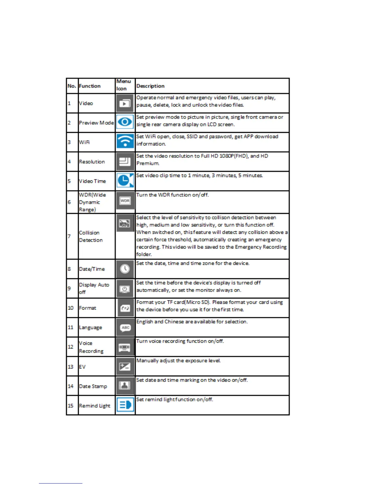 7.2 Function settings