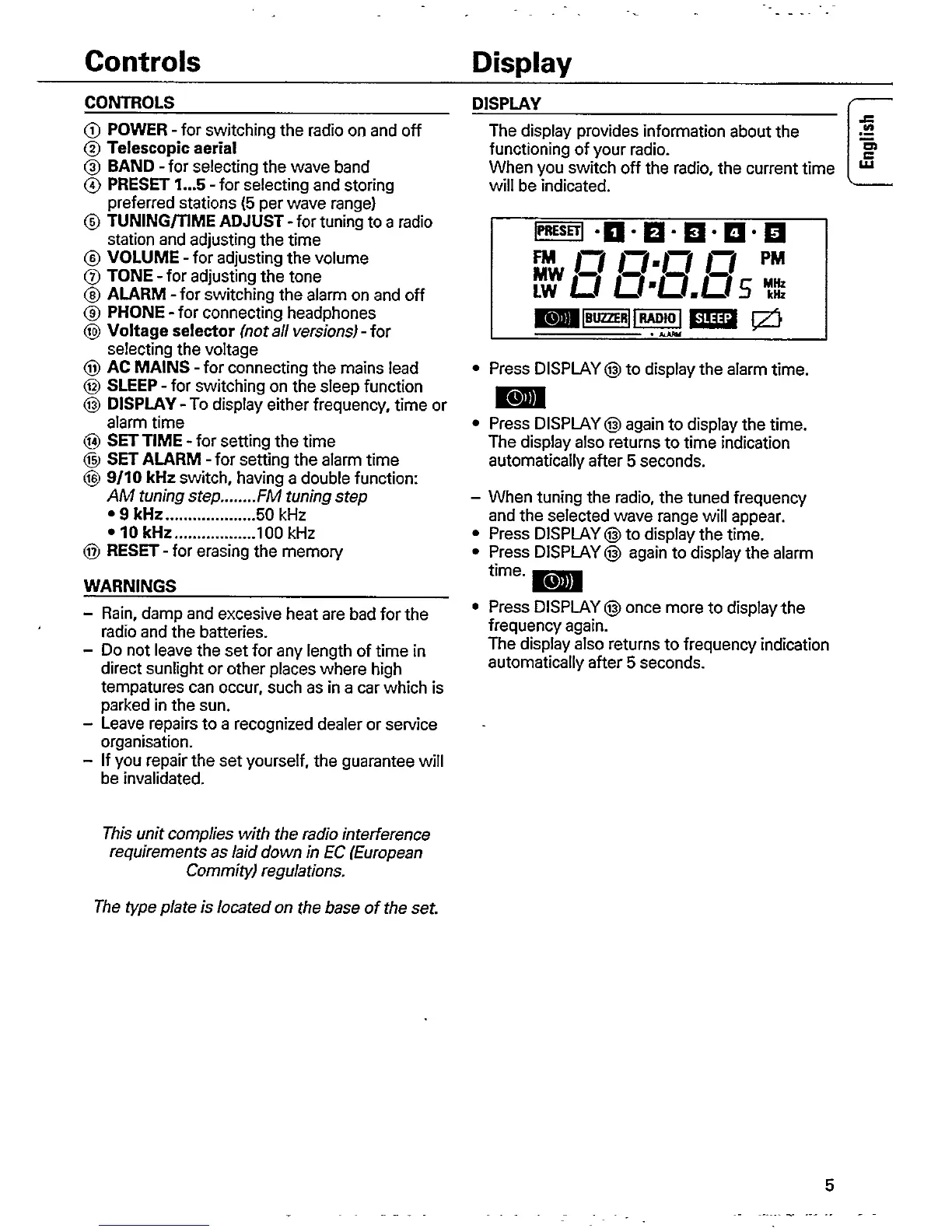 Philips AE 2340/00 - Controls; Display