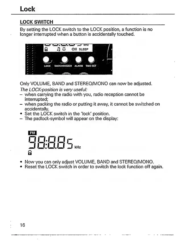 Philips AE 3650 - Lock Switch Operation; Lock Switch Functionality