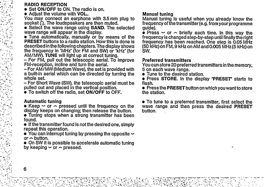 Philips AE 3805 - Tuning Radio Stations; Storing Preferred Stations