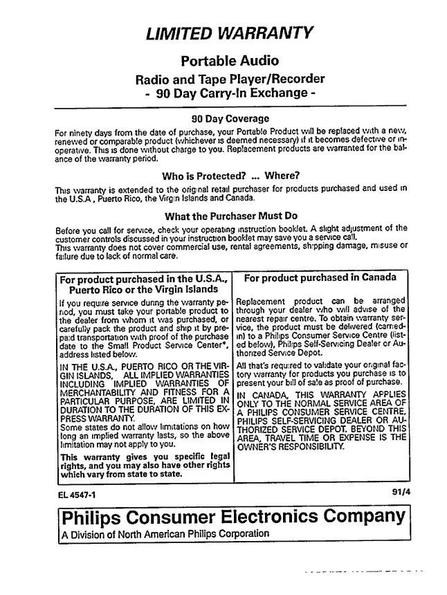 Philips AE 3905 - Product Limited Warranty; Warranty Coverage and Duration; Eligibility and Geographic Scope; Steps for Warranty Claims