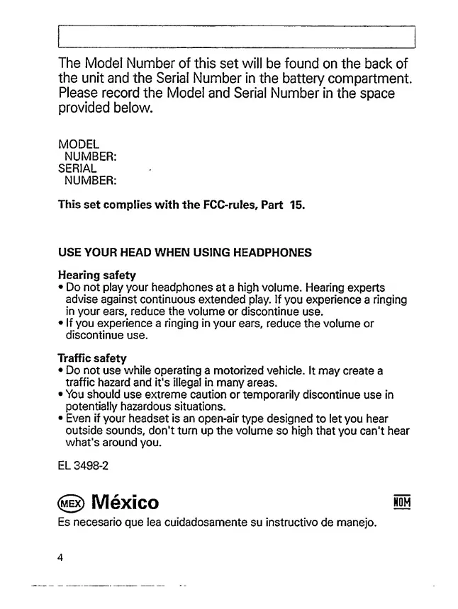 Philips AE 3905 - Important Safety and Usage Information; Hearing and Traffic Safety Guidelines; Regulatory Compliance and Device ID
