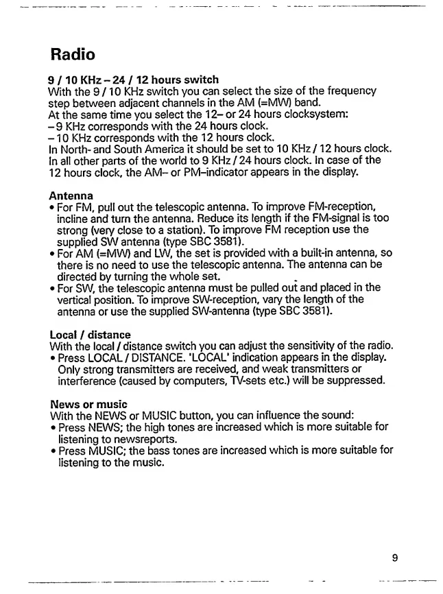Philips AE 3905 - Radio Tuning and Sound Control; AM Tuning Steps and Clock; Optimizing Radio Reception; Local vs. Distance Tuning