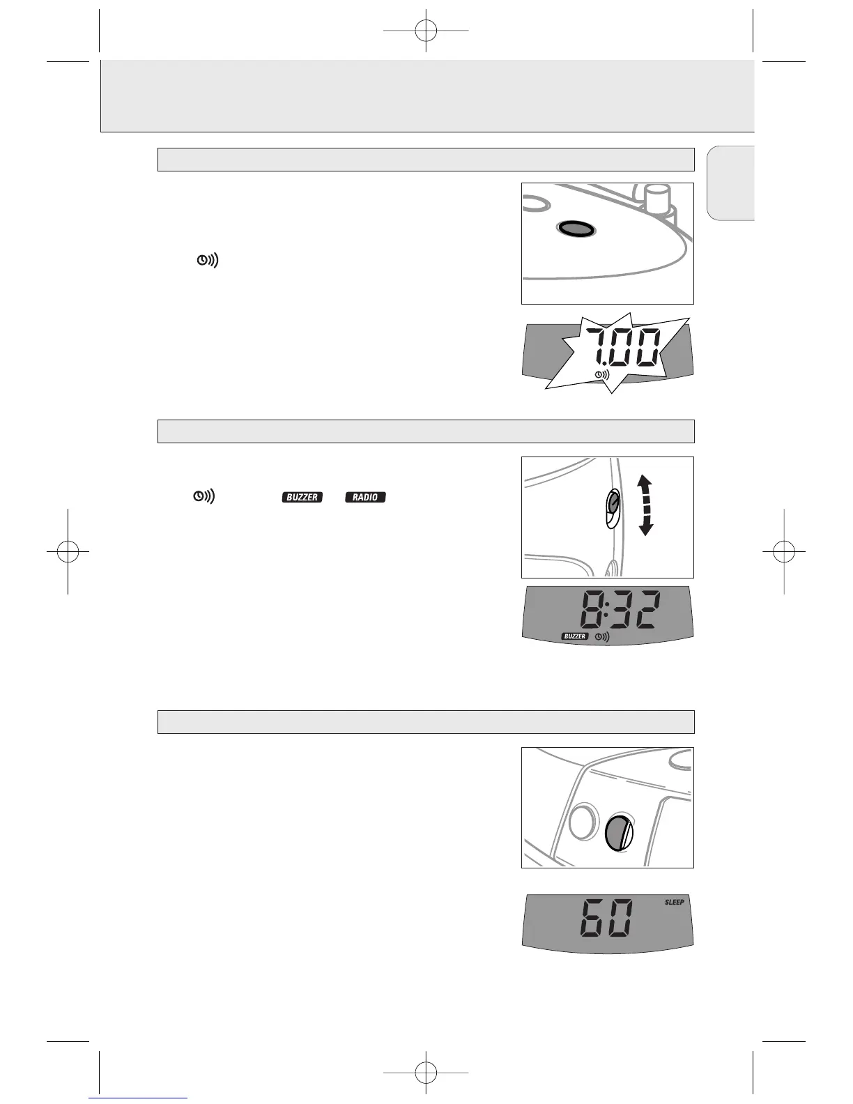 • Push the slider to ·BUZZ or ·RADIO to select the desired alarm