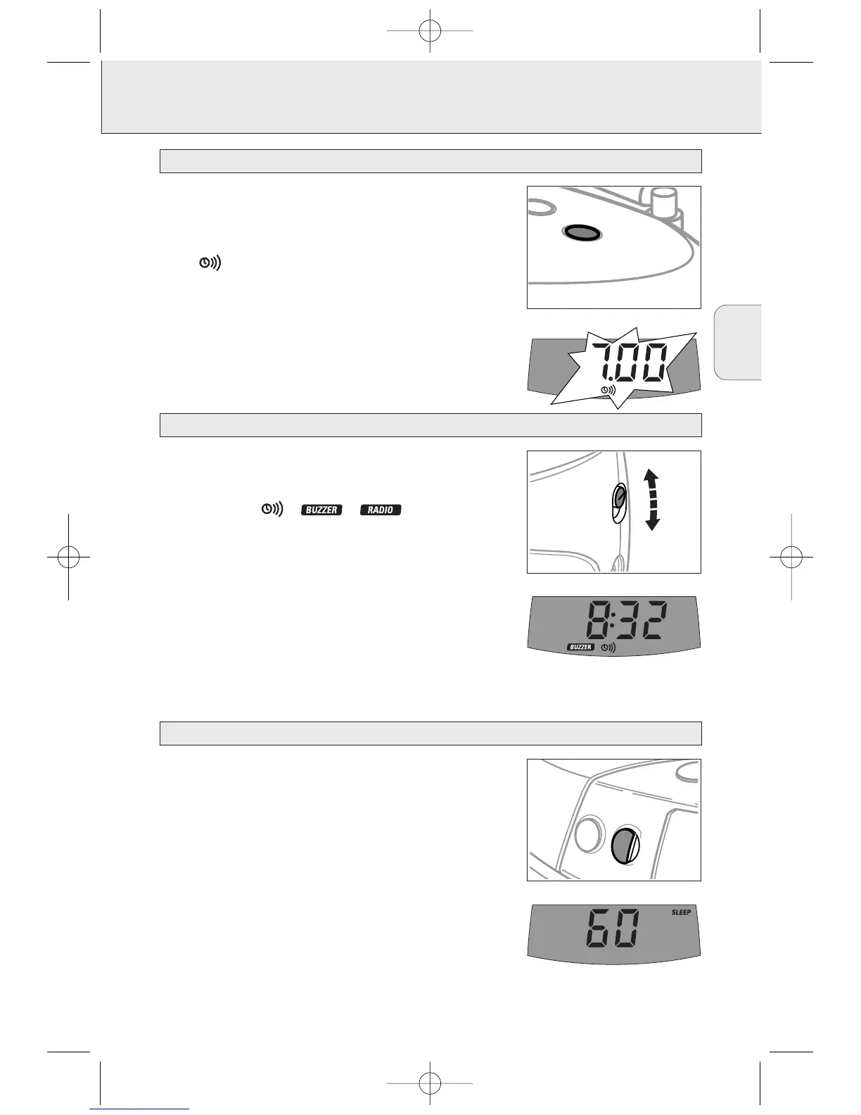 el zumbador de alarma o la radio a una hora preseleccionada.