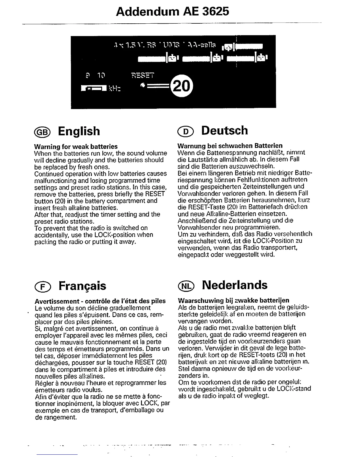 Philips AE3625/00 - Battery Management and Operation; Warning for Weak Batteries