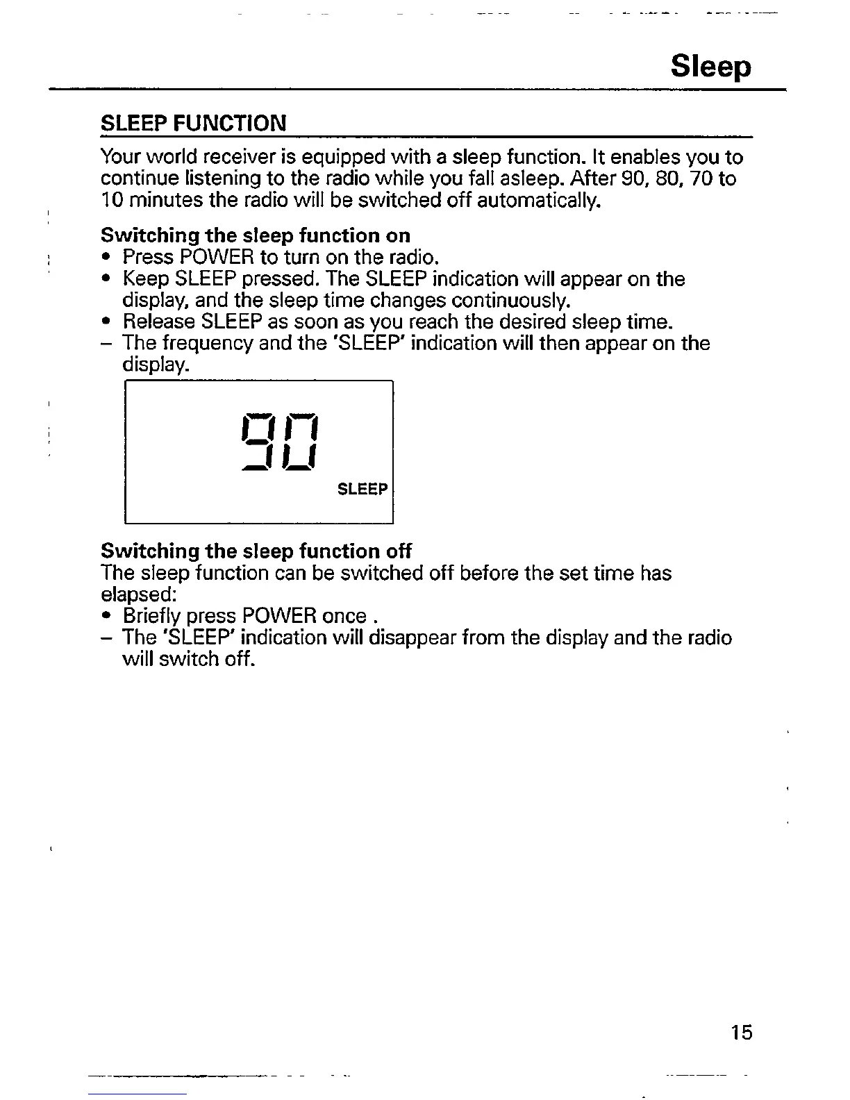 Philips AE3650/03 - Sleep; Switching the sleep function on; Switching the sleep function off