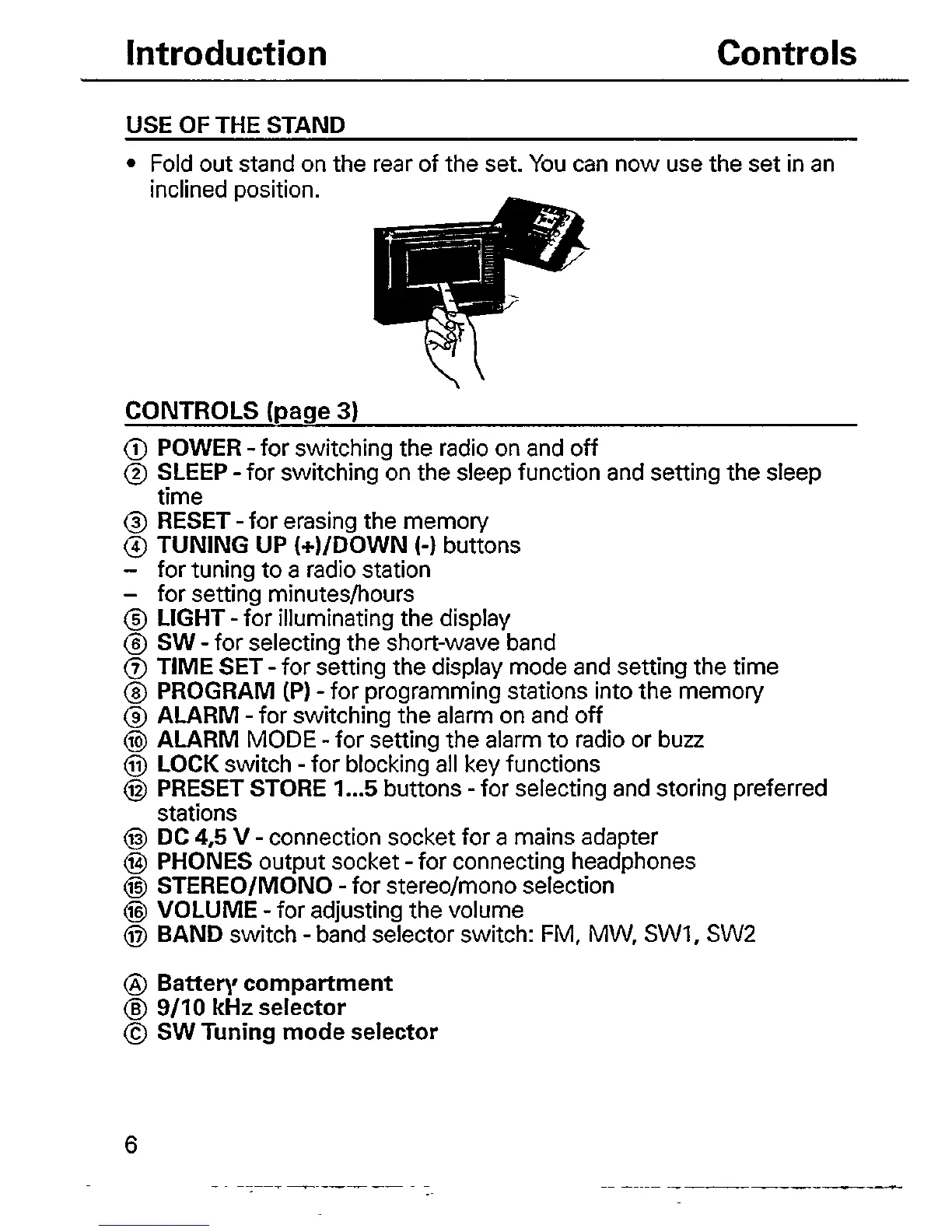 Philips AE3650/03 - Controls; POWER; SLEEP; RESET HOLE