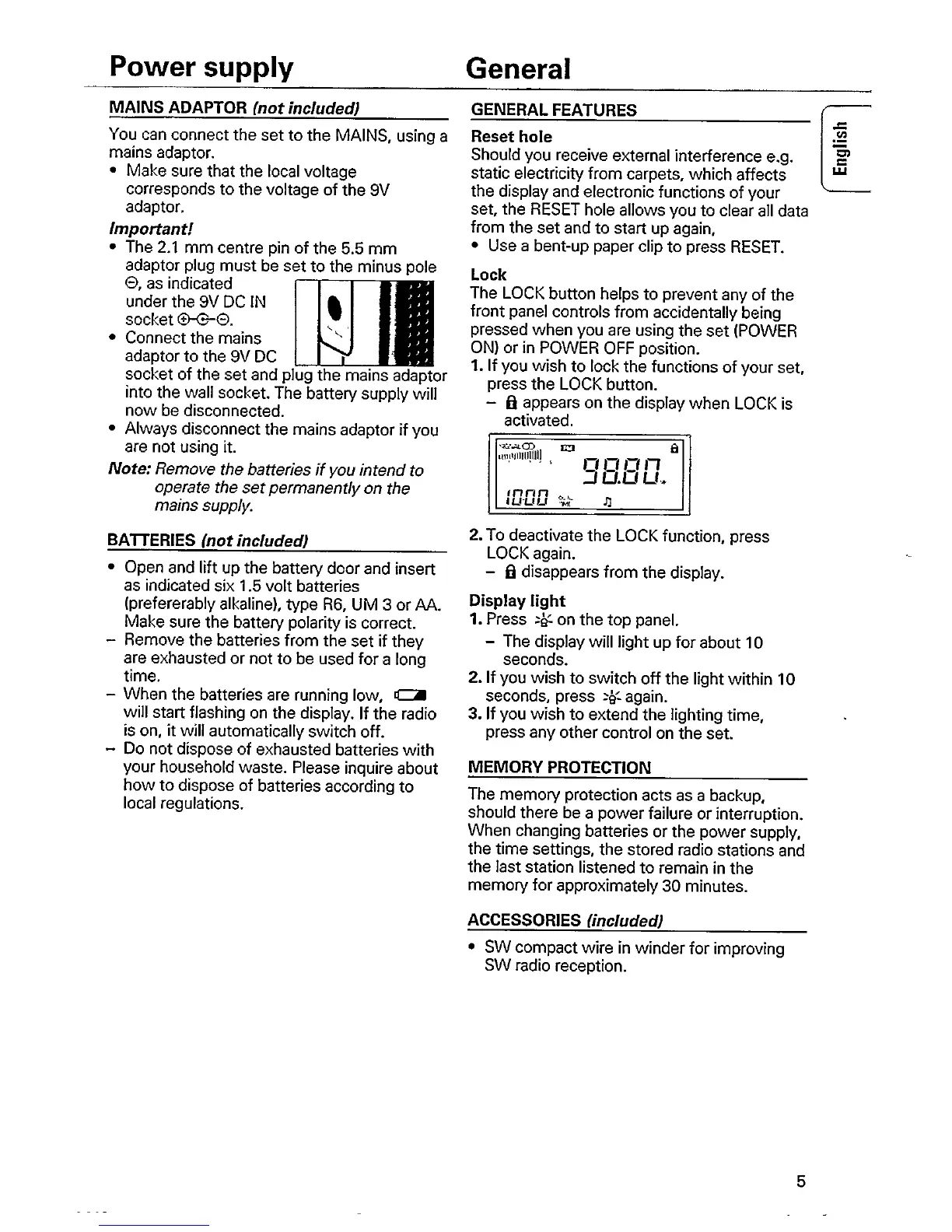 Philips AE3750/00 - Power Supply; Mains Adaptor; Batteries