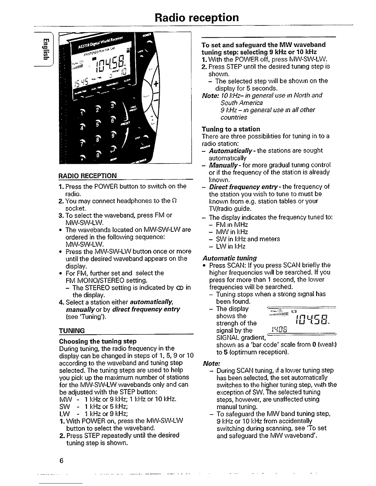 Philips AE3750/00 - Radio Reception; Tuning Step Selection; Tuning Methods