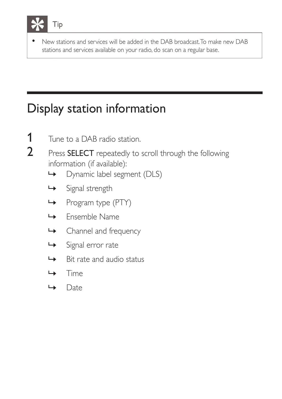 Display station information