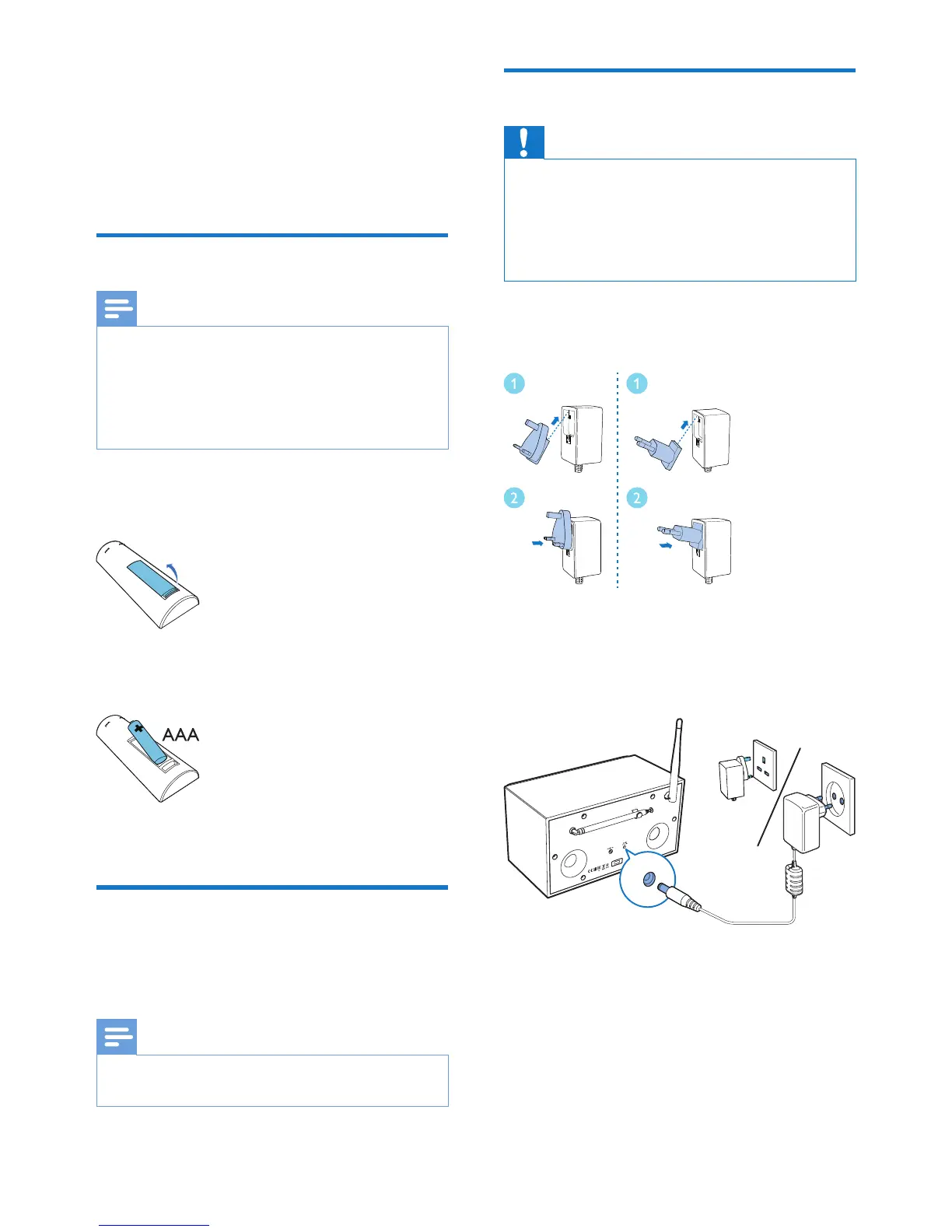 • Risk of electric shock! When you unplug the AC plug,