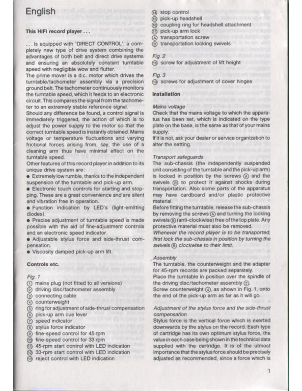 Philips AF 877 - Philips Hi-Fi Record Player Overview; Controls and Indicators; Installation and Setup; Mains Voltage Verification