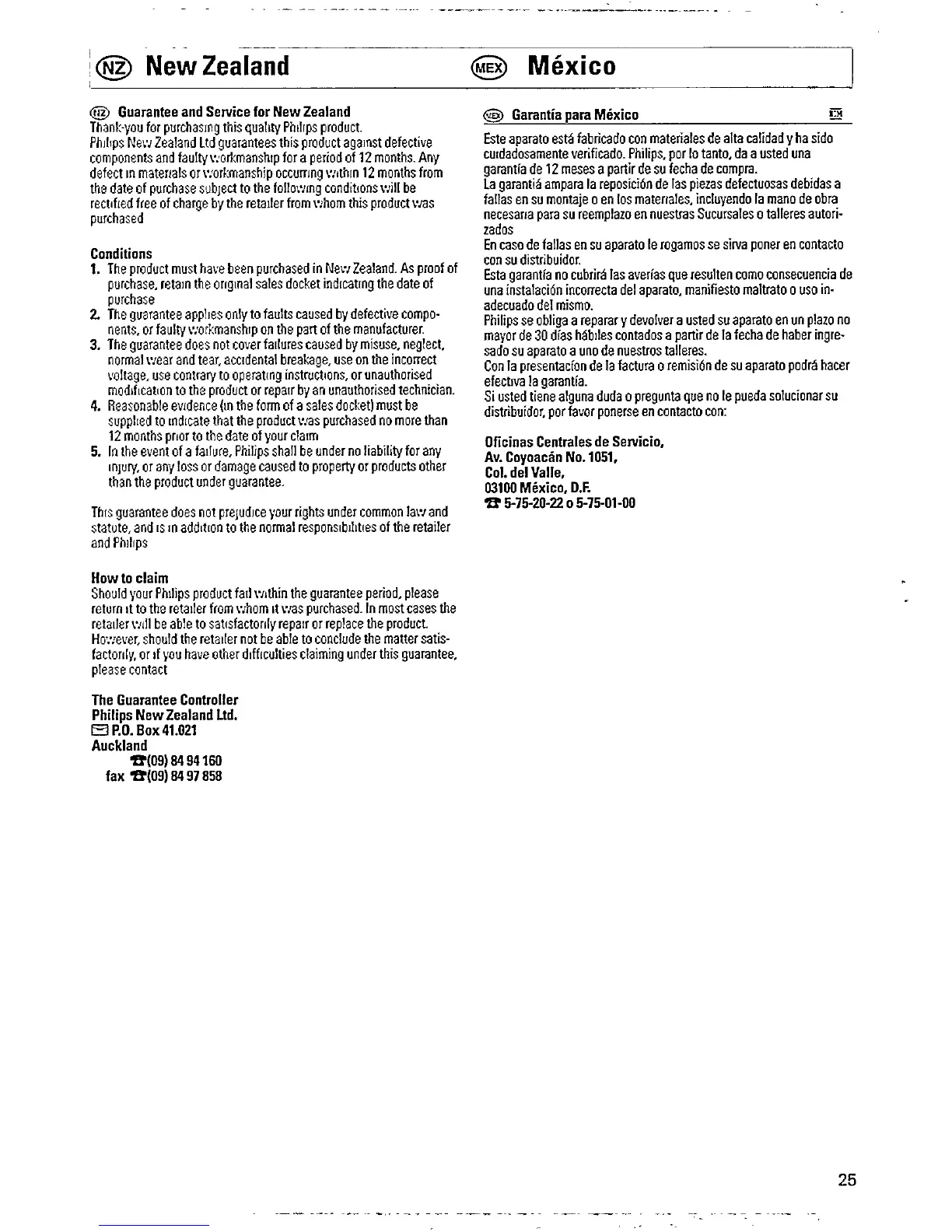 Philips AJ 3015 - Mexican Guarantee and Service; Warranty Terms; Warranty Exclusions; Service Contact Information