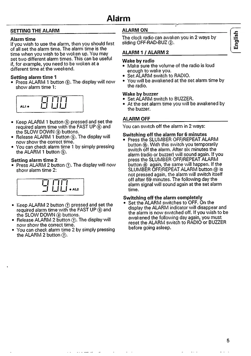 Philips AJ 3240 - Alarm Functions; Setting alarm times; Alarm wake-up modes; Switching off the alarm