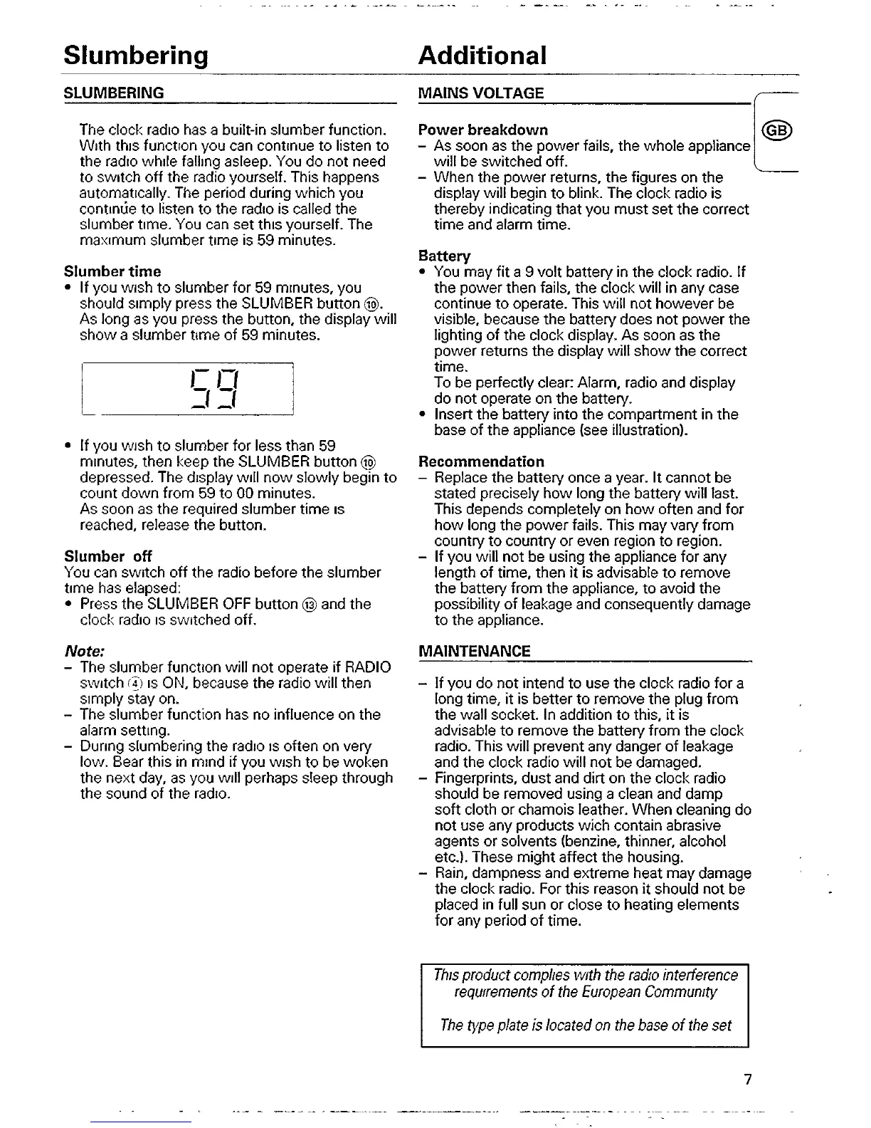 Philips AJ 3250 - Slumbering; SLUMBERING; Additional; MAINS VOLTAGE