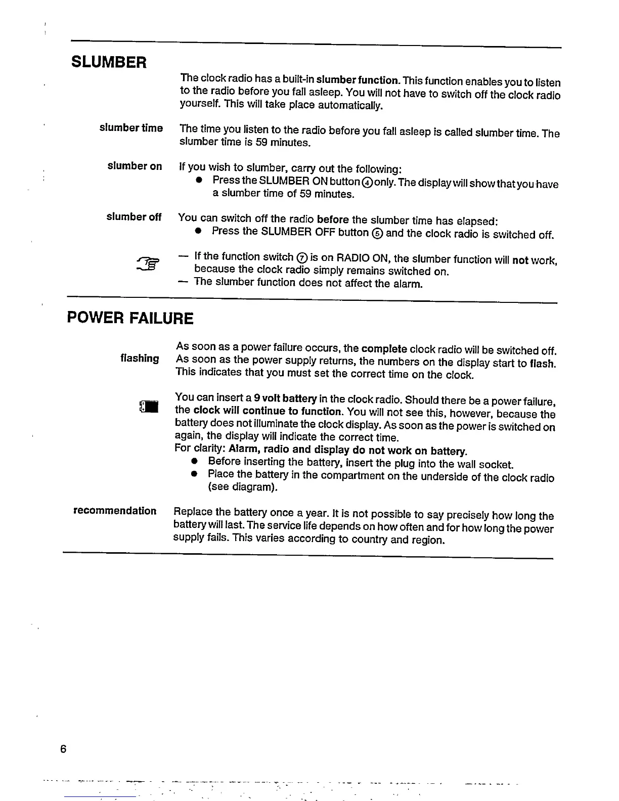 Philips AJ 3390 - Slumber; Power Failure; Slumber Time; Slumber on