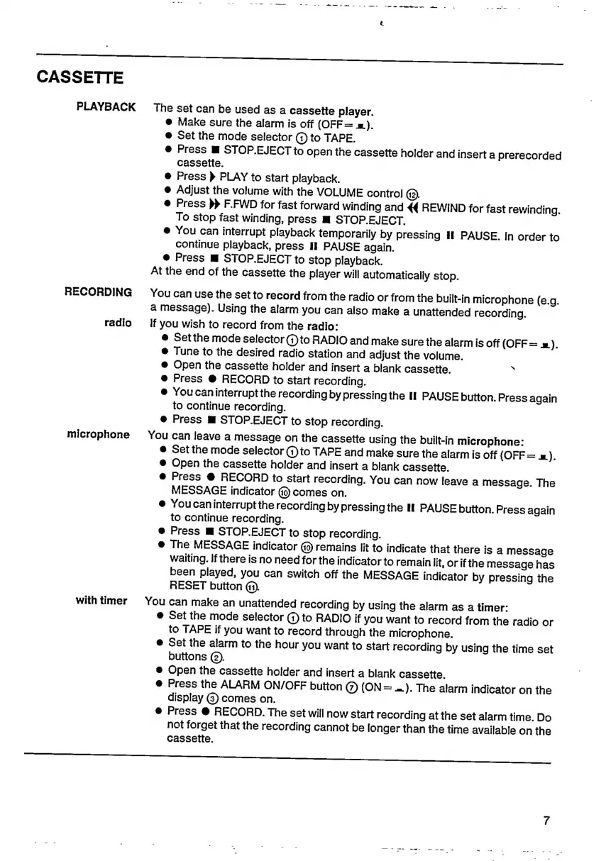 Philips AJ 3800 - Cassette Operation; Cassette Playback; Recording Cassettes; Timed Recording Setup