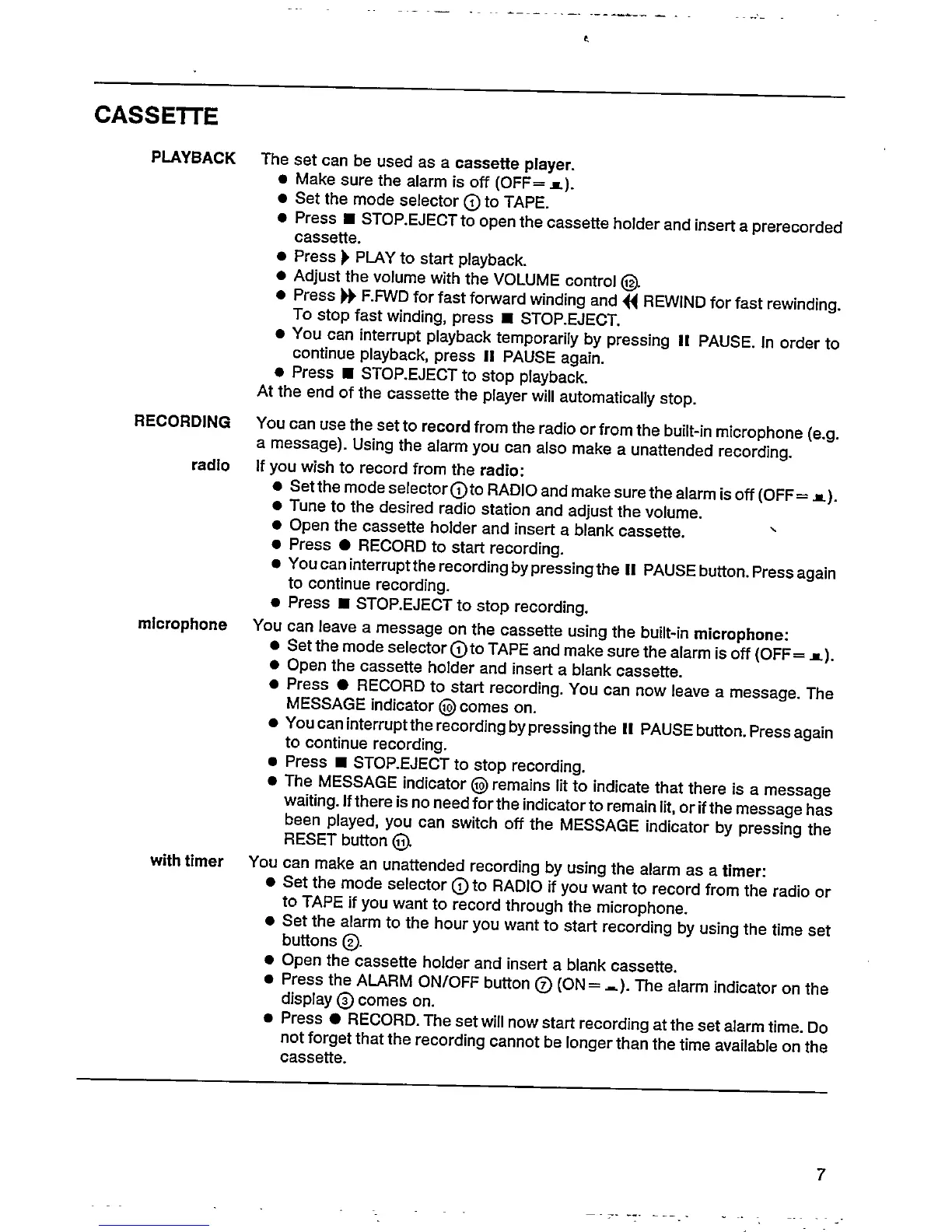 Philips AJ 3802 - CASSETTE; Cassette Playback and Recording