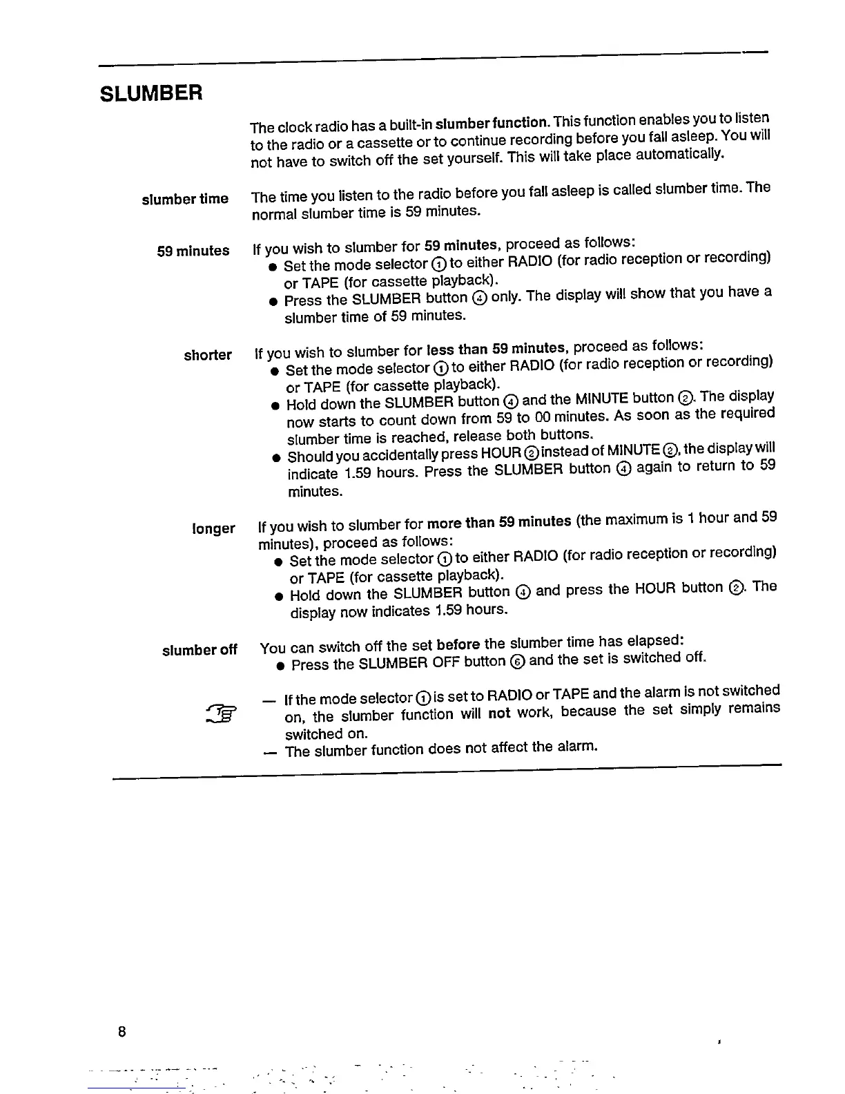 Philips AJ 3802 - SLUMBER; Slumber Function Usage