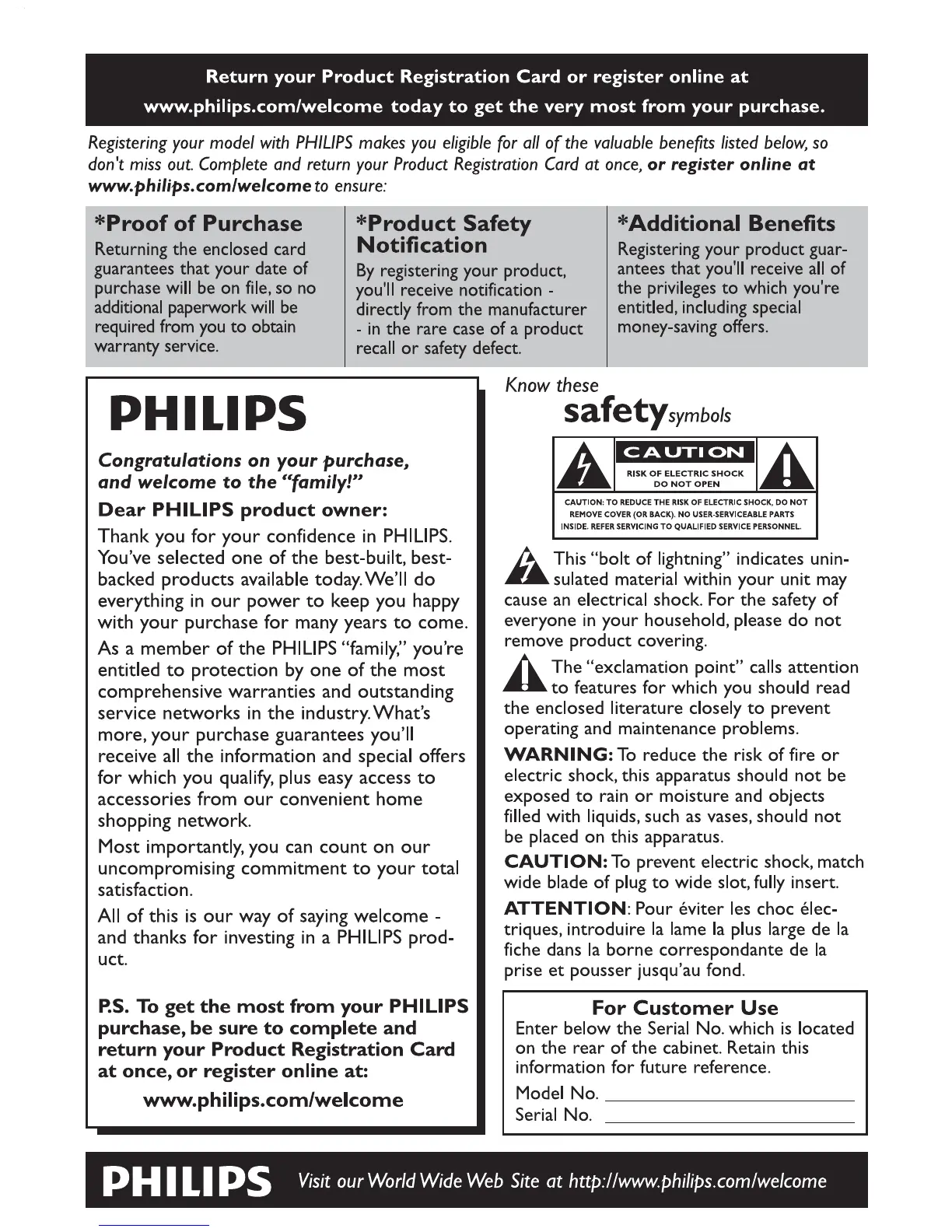 Philips AJ3231/37 - Safety Symbols and Customer Information; Customer Use Information