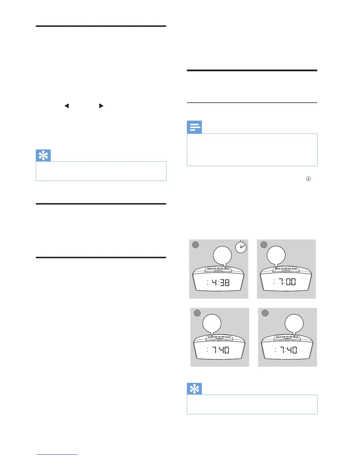 • The clock radio exits alarm setting mode when being