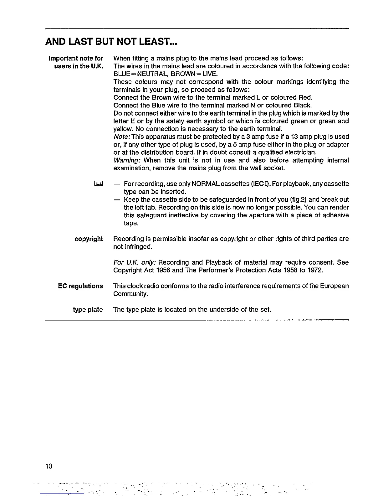 Philips AJ3800 - Important Usage Notes; UK Mains Plug Wiring; Safety and Fuse Requirements