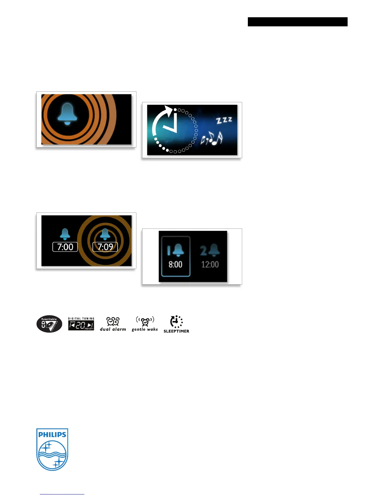 The Philips audio system comes with two alarm