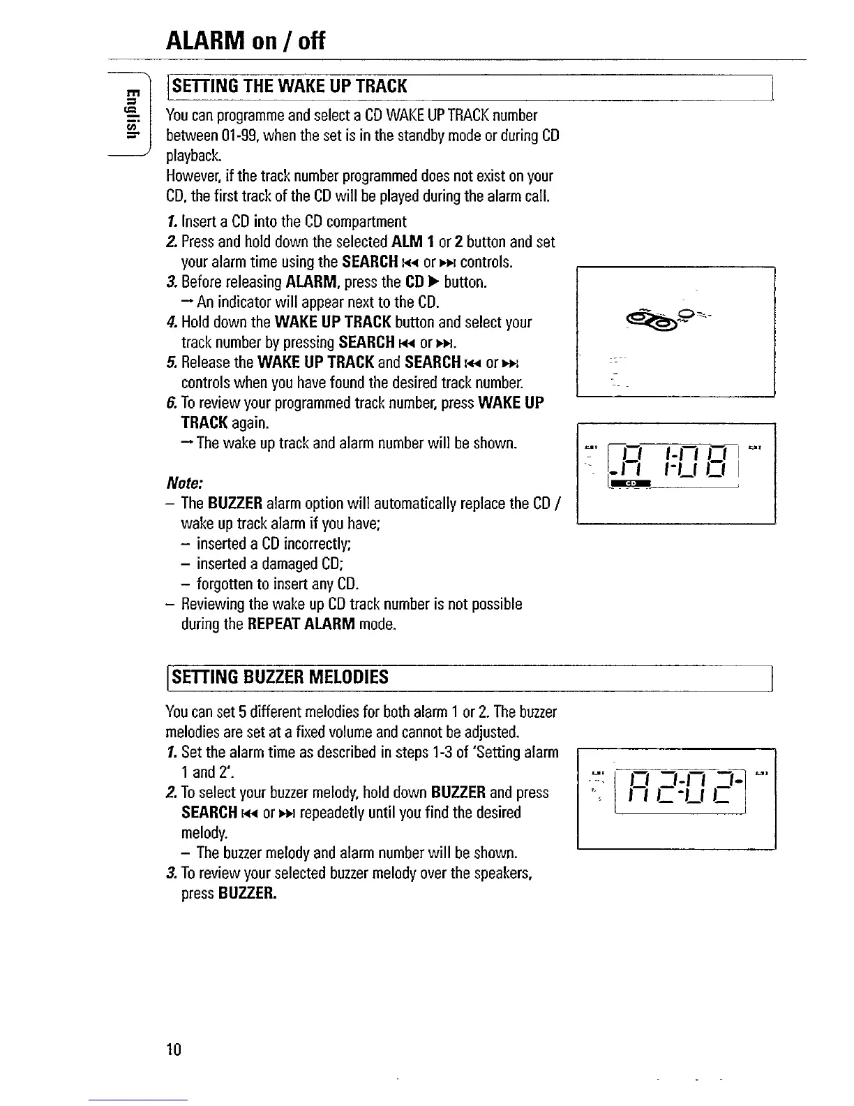 Philips AJ3925 - Advanced Alarm Features; Setting the Wake Up Track; Setting Buzzer Melodies