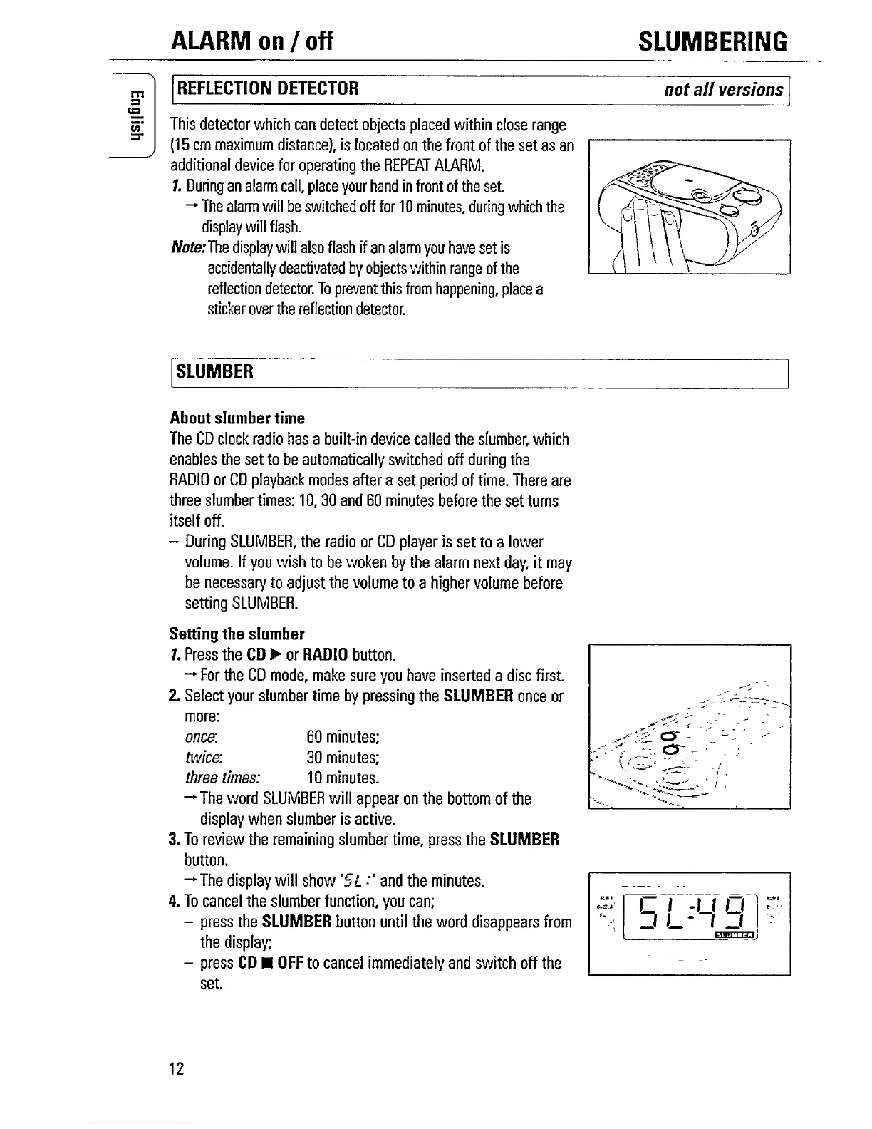 Philips AJ3925 - Slumbering; Reflection Detector; About Slumber Time; Setting the Slumber