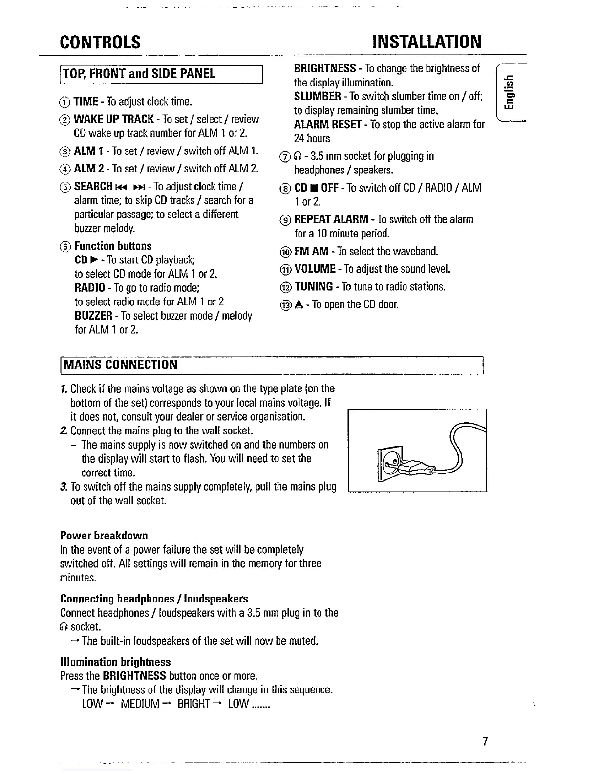 Philips AJ3925 - Controls and Connections; Top, Front, and Side Panel Controls