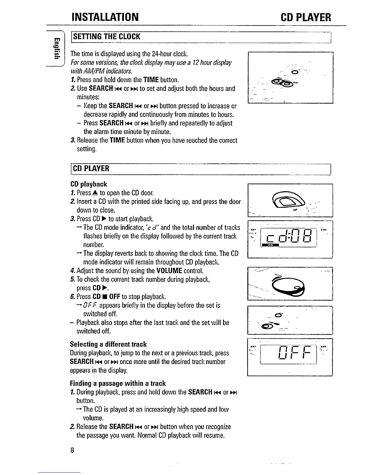 Philips AJ3925 - Setting the Clock and CD Player Operation; Setting the Clock; CD Playback Basics
