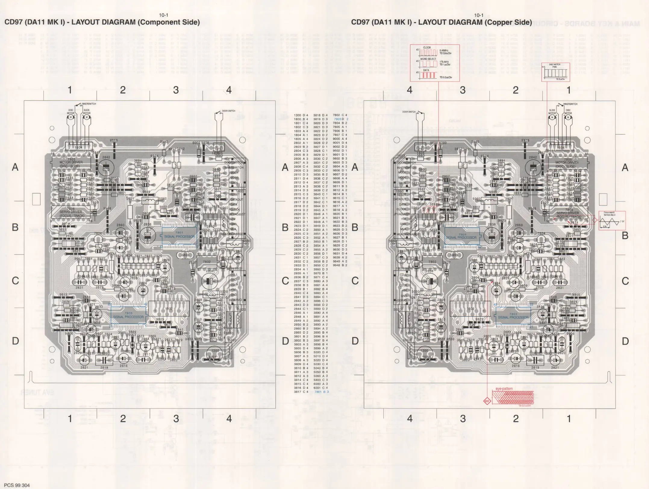 Philips AJ3935 - CD97 (DA11 MK I) - Layout Diagram (Component Side)