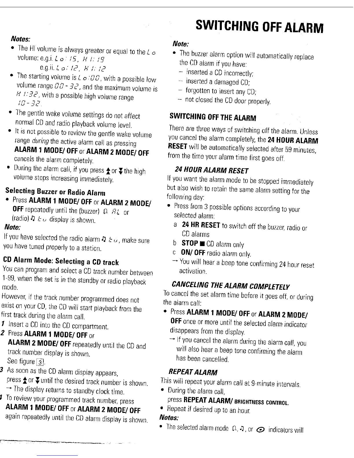 Philips AJ3953 - Alarm Management; Alarm Volume Details; Selecting Alarm Type; Setting CD Alarm Track