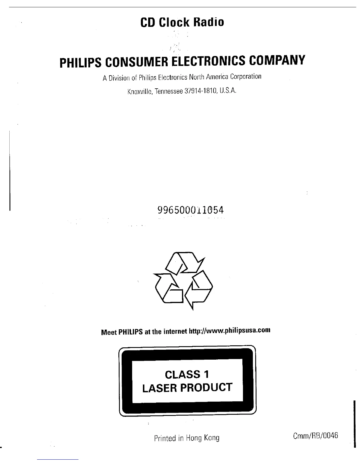 Philips AJ3953 - Company Information and Laser Safety; Philips Contact and Website; Laser Product Classification